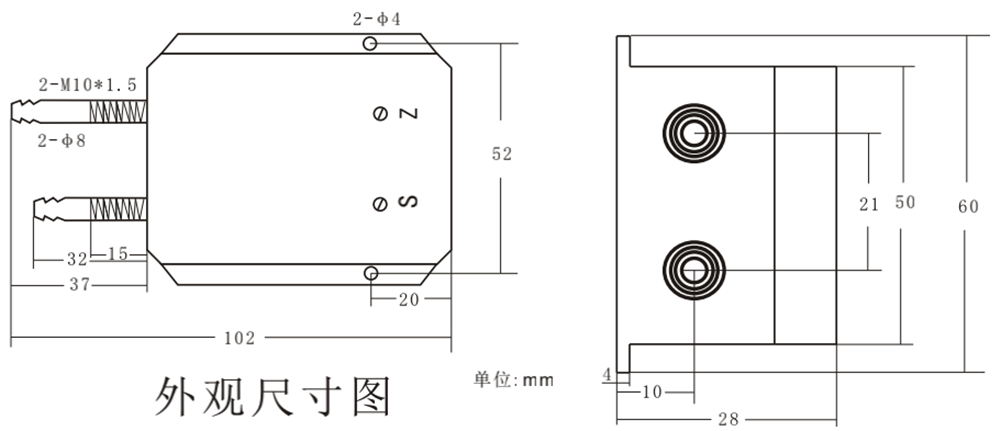 零點(diǎn)和滿度調(diào)節(jié) Z為零位調(diào)節(jié) S為滿度調(diào)節(jié)