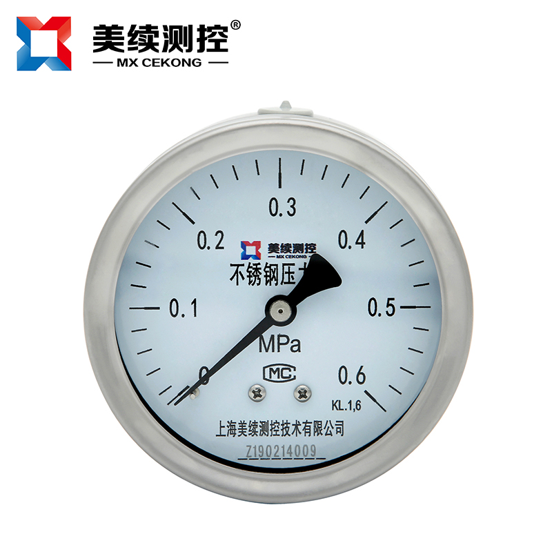 工業用壓力表MX-YB-01系列分為全不銹鋼常規壓力表和不銹鋼耐震壓力表,不銹鋼壓力表廣泛用于石油、化工、化纖、冶金、電站等工業部中對液體、氣體的簡易監測和測量,以便工人,企業能夠有效地對所需要監測的自動化設備實施有效的控制,其特點就是方便快捷和成本低,對安裝工人的安裝經驗要求不高。如果想要進行更為高精度額測量請使用上海美續測控MX-YL-系列變送器。如果使用環境中有震動等壞境因素,可以使用本系列的不銹鋼耐震耐壓力表,其在指針界面灌裝抗震油可以有效地減少震動對儀表的損害。