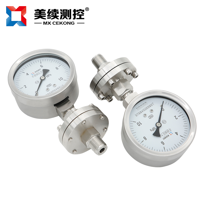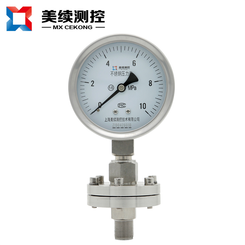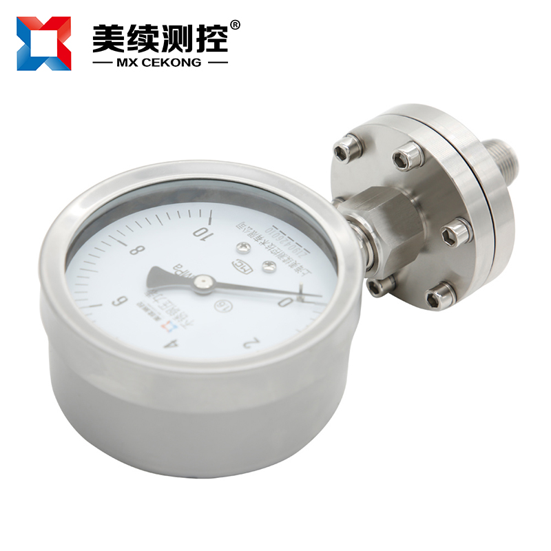 化工封油隔膜壓力表MX-YB-04隔膜式壓力表采用高彈性合金波紋膜片、原裝進(jìn)口機(jī)芯,全不銹鋼結(jié)構(gòu)設(shè)計(jì),能適應(yīng)各行各業(yè)的腐蝕性介質(zhì)的壓力測(cè)量。表殼任意360度調(diào)整最佳可視角度。