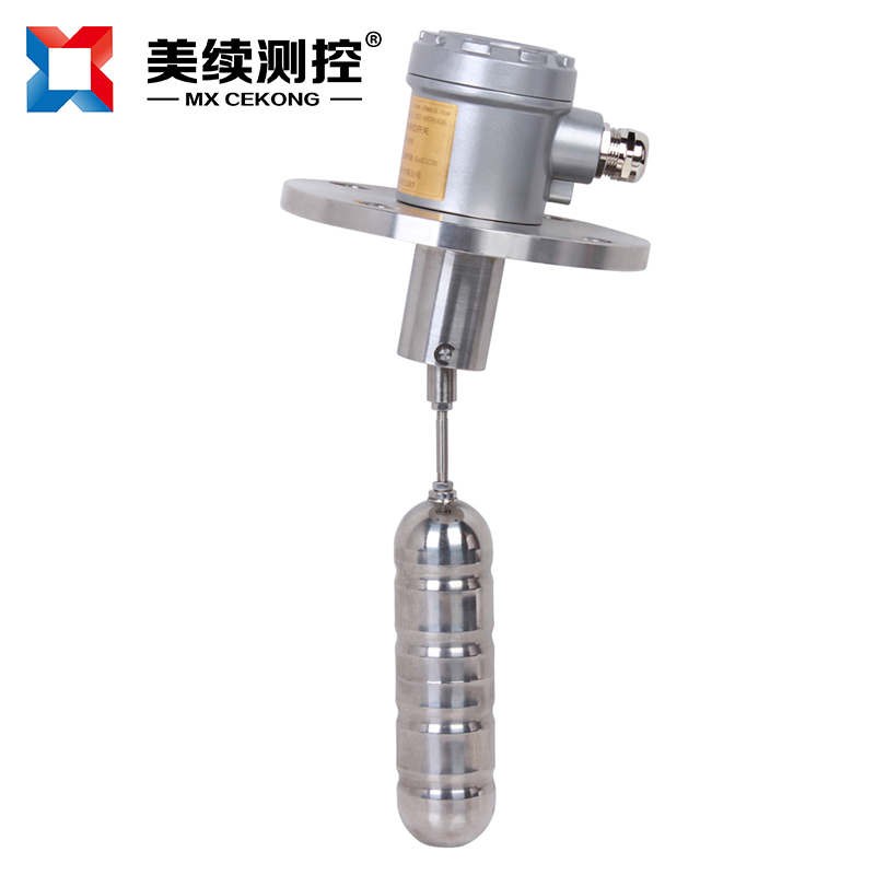 浮球連續式液位計MX-WW-144-03連桿浮球液位開關與小型浮球液位開關原理基本相同,通常將密封的非磁性金屬或塑膠管內根據需要設置一點或多點磁簧開關,再將中空而內部有環形磁鐵的的浮球固定在桿徑內磁簧開關相關位置上,使浮球在一定范圍內上下浮動,利用浮球內的磁鐵去吸引磁簧開關的閉合,產生開關動作,以控制液位。常開和常閉是沒有注入液體時的狀態。 連桿浮球液位開關為定制品,依照被測液體的溫度、壓力、比重、耐酸堿等特性,選擇適合規格的浮球。選購時還需確定接續規格(法蘭安裝或螺紋安裝等),各動作點位置,動作形式(常開或常閉)和總長。