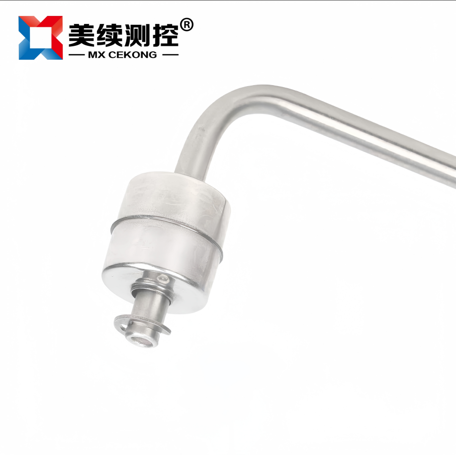 側裝簡易型浮球開關MX-WW-144P-03C與小型浮球液位開關原理基本相同,通常將密封的非磁性金屬或塑膠管內根據需要設置一點或多點磁簧開關,再將中空而內部有環形磁鐵的的浮球固定在桿徑內磁簧開關相關位置上,使浮球在一定范圍內上下浮動,利用浮球內的磁鐵去吸引磁簧開關的閉合,產生開關動作,以控制液位。常開和常閉是沒有注入液體時的狀態。 此款產品可以裝在罐子的側邊,通過上下液體的變化達到控制液體低開高停的功能,依照被測液體的溫度、壓力、比重、耐酸堿等特性,選擇適合規格的浮球。選購時還需確定接續規格(法蘭安裝或螺紋安裝等),動作點位置,動作形式(常開或常閉)和總長。
