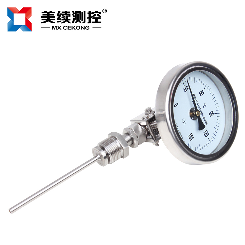 雙金屬溫度計是基于繞制成環(huán)性彎曲狀的雙金屬片組成。一端受熱膨脹時,帶動指針旋轉,工作儀表便顯示出熱電勢所應的溫度值。