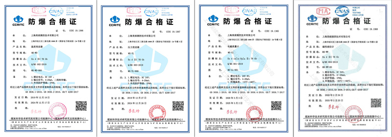 成功的人千方百計,失敗的人千難萬險。上海美續測控技術有限公司(后文簡稱美續測控)在不斷地努力下,至2019年底2020年初我們取得了由“煤炭科學研究總院檢測中心”頒發的溫度,壓力,流量,物位類產品“防爆合格證”,涵蓋了美續測控大部分產品類別。美續測控以生產工業儀器儀表而著名,自成立以來廣受大家喜愛。